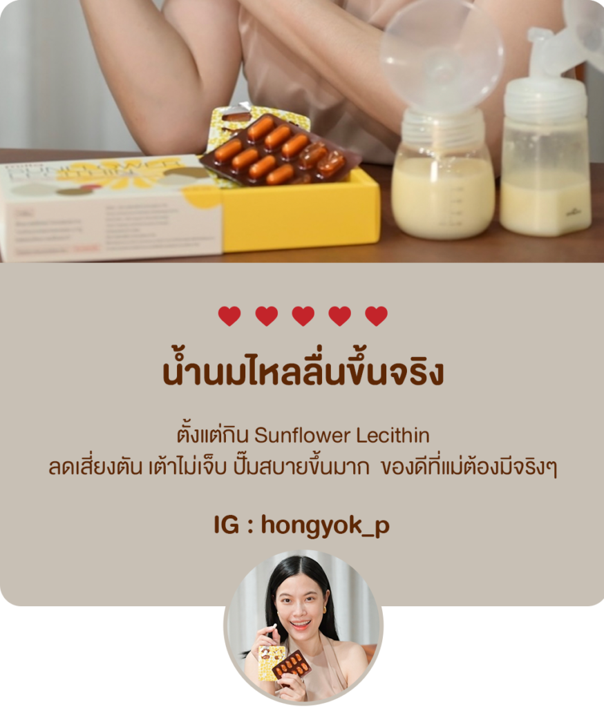 เลซิตินจากดอกทานตะวัน อ่อนโยน ช่วยเปิดท่อน้ำนมที่อุดตันได้ รวมถึงป้องกันการอุดตันในอนาคต สำหรับแม่ที่มีแนวโน้มที่จะเป็นท่อน้ำนมอุดตันได้ง่าย นอกจากนี้ยังช่วยแม่ที่มีปัญหาเต้านมคัดตึงหรือมีน้ำนมมากเกินไป