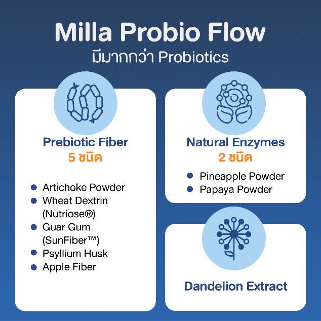 สูตร Synbiotics : มี Probiotics + Prebiotics ในซองเดียว โดยมีโปรไบโอติกส์ 10 สายพันธุ์ 30 ล้าน CFU, พรีไบโอติกไฟเบอร์ 5 ชนิด เอนไซม์และสารสกัดจากธรรมชาติ  เพราะ “ลำไส้แข็งแรง” คือจุดเริ่มต้นของสุขภาพที่ดี เพื่อดูแลสุขภาพคุณแม่อย่างอ่อนโยนและลึกถึงภายใน
